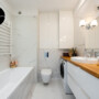 Łazienka: Wykończona w wysokim standardzie z meblami od stolarza.
